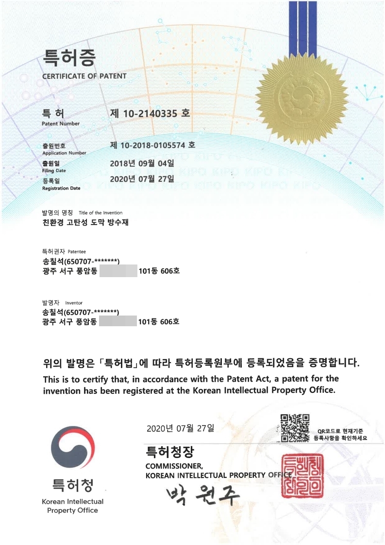 특허증 방수제 제조방법